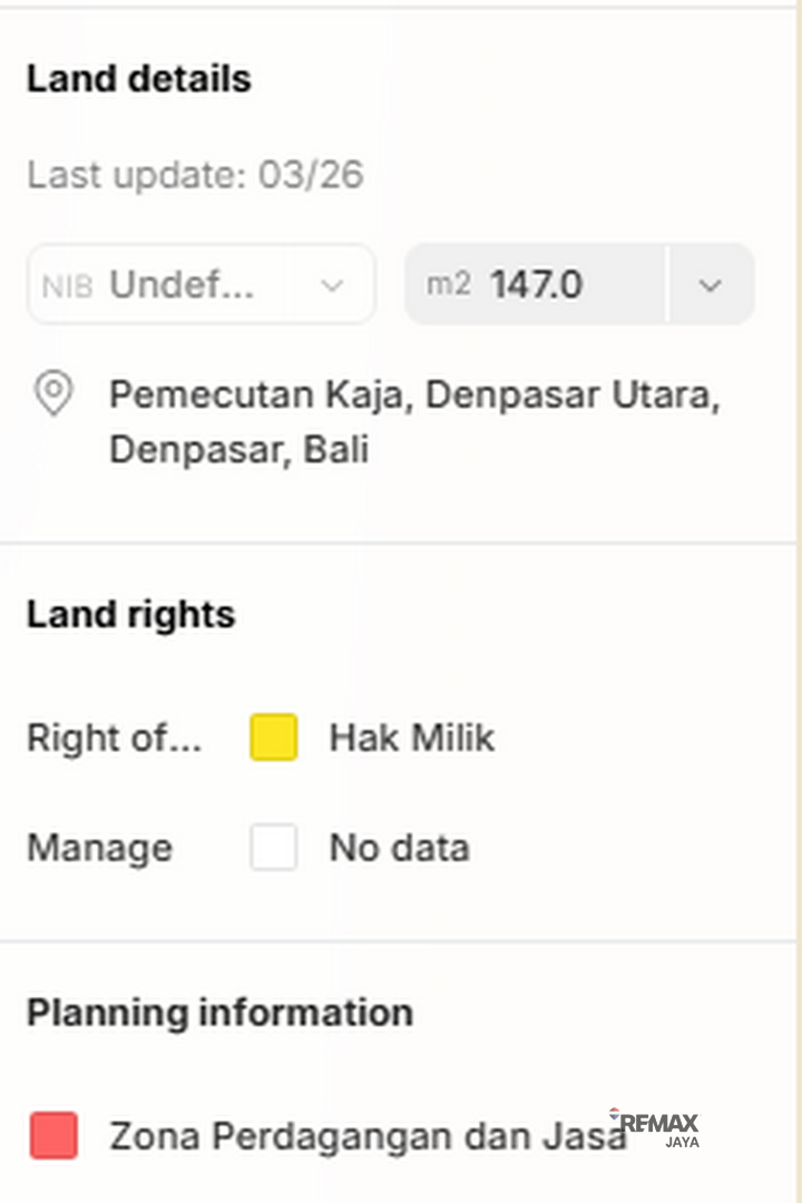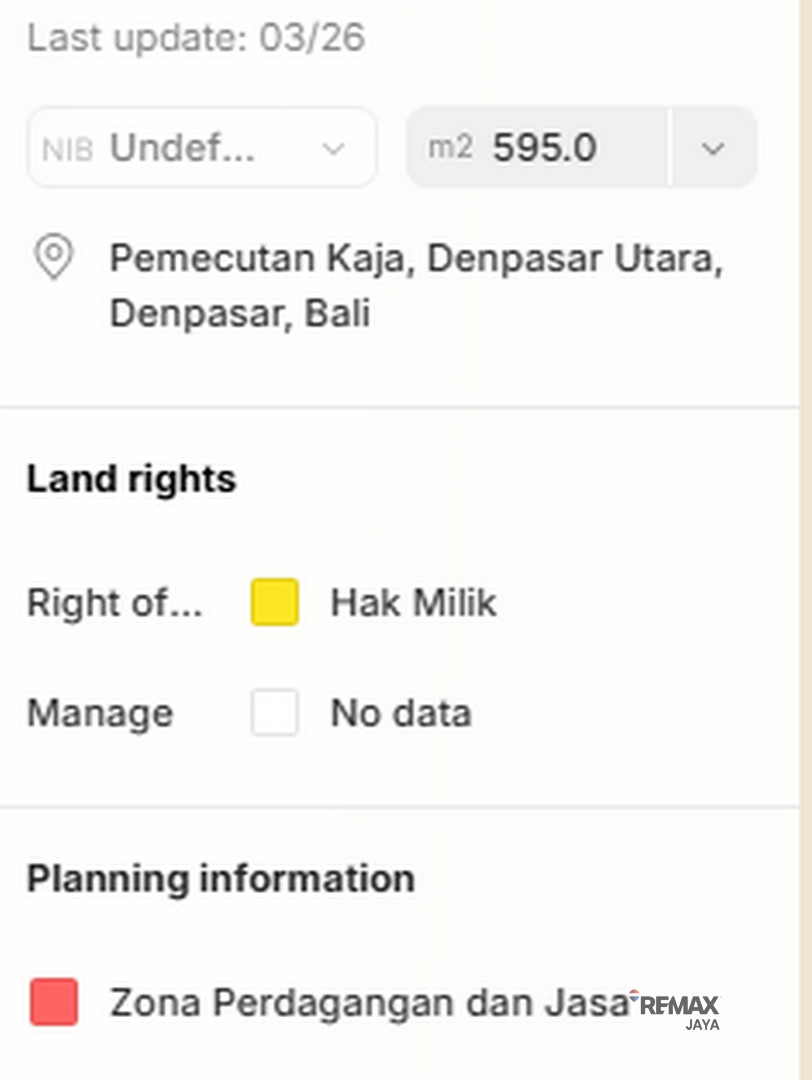 A great opportunity to own land located on the main road in the growing and busy area of Denpasar Barat. This property offers excellent potential for residential or commercial development.